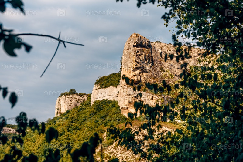 Ландшафт гор Крыма, панорамный пиковый хребет в туманное лето