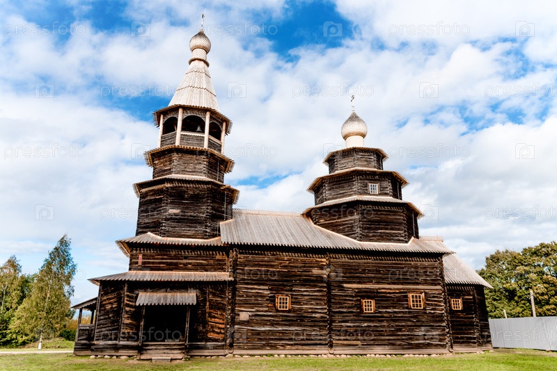 Традиционный русский деревянный мощеный камень старого православного христианского храма