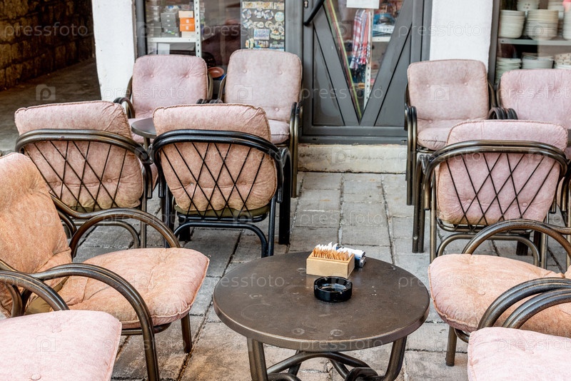 Ресторан кафе терраса под открытым небом, городской ландшафт Cetinje city of Montenegro
