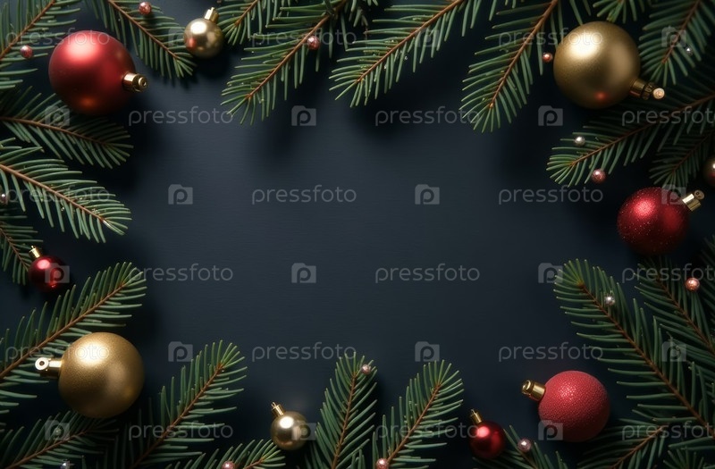 Рождественская ветвь черного фона, текст карты, верхний вид. искусственно создан