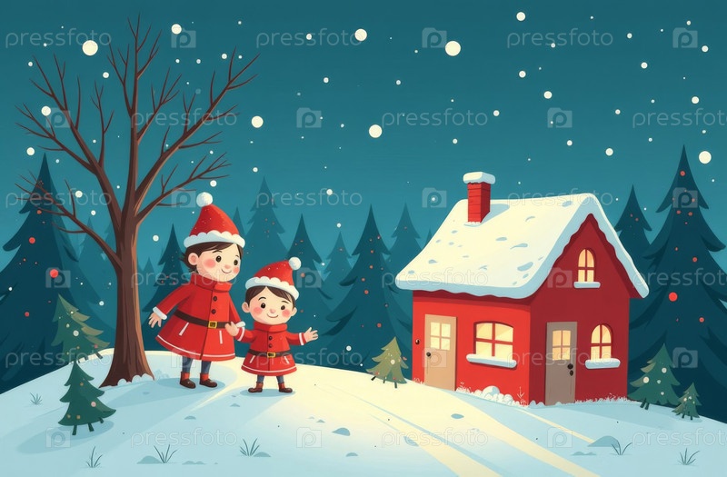 Приусадебная зима, снегопад, рождественские елки в снегу, новогодний снег. искусственно создан