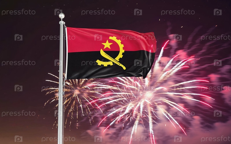AI генеративный Национальный флаг Независимости Анголы, фон с фейерверком