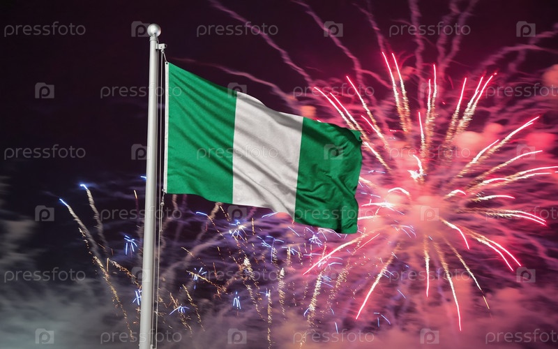 Национальный флаг независимости Нигерии, фоновый фейерверк