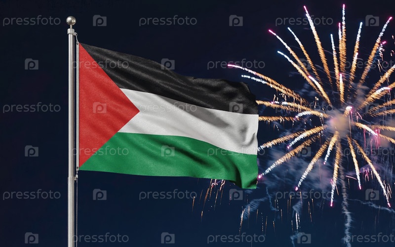 Национальный флаг Независимости Государства Палестина, фоновый фейерверк