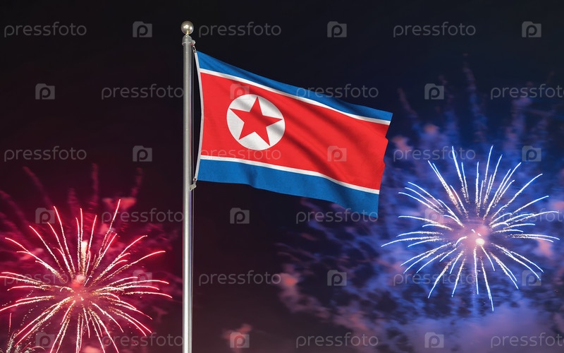 Национальный флаг независимости Северной Кореи представляет собой фоновый фейерверк