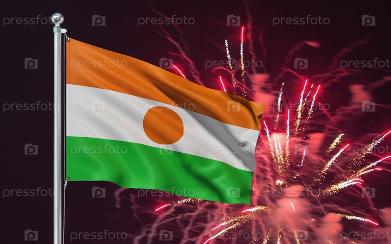 AI Generative National Independence Флаг Нигера, фейерверк на заднем плане