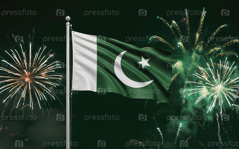 Национальный флаг Пакистана, фоновый фейерверк