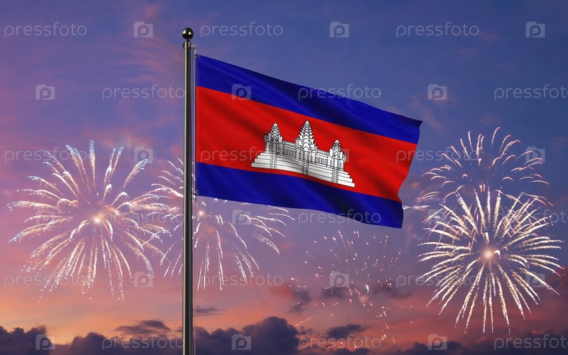 AI генеративный Национальный флаг Независимости Камбоджи, фон с фейерверком