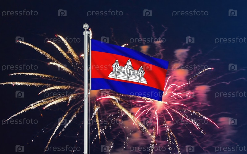 AI генеративный Национальный флаг Независимости Камбоджи, фон с фейерверком