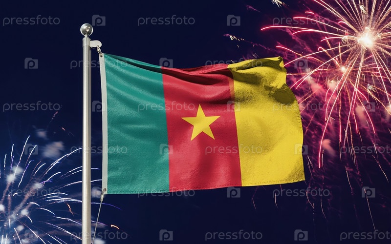 AI генеративный Национальный флаг независимости Камеруна, фон с фейерверком