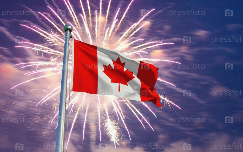 AI генеративный Флаг национальной независимости Канады, фейерверк на заднем плане
