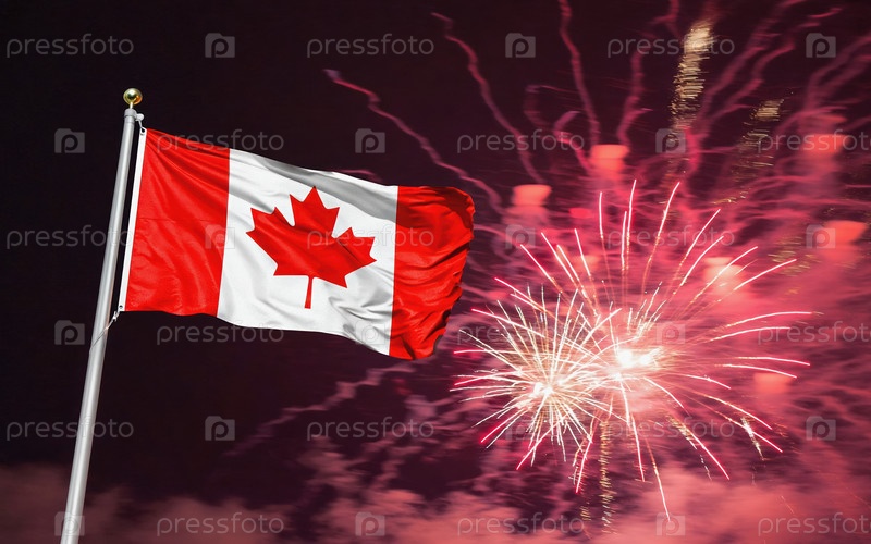 AI генеративный Флаг национальной независимости Канады, фейерверк на заднем плане