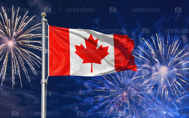 AI генеративный Флаг национальной независимости Канады, фейерверк на заднем плане