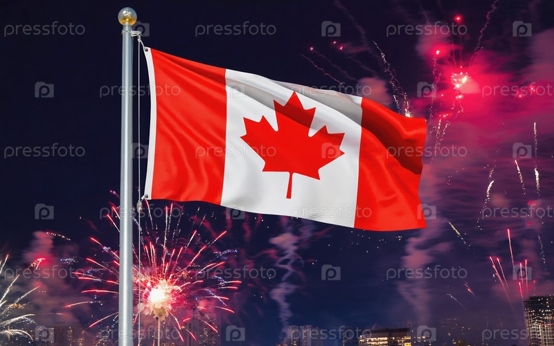 AI генеративный Флаг национальной независимости Канады, фейерверк на заднем плане