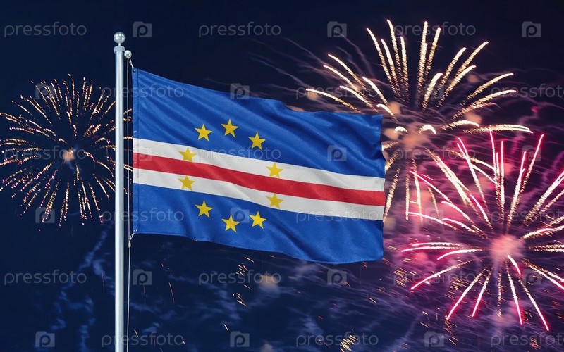 AI generative Национальный флаг Независимости Кабо-Верде, фон с фейерверком