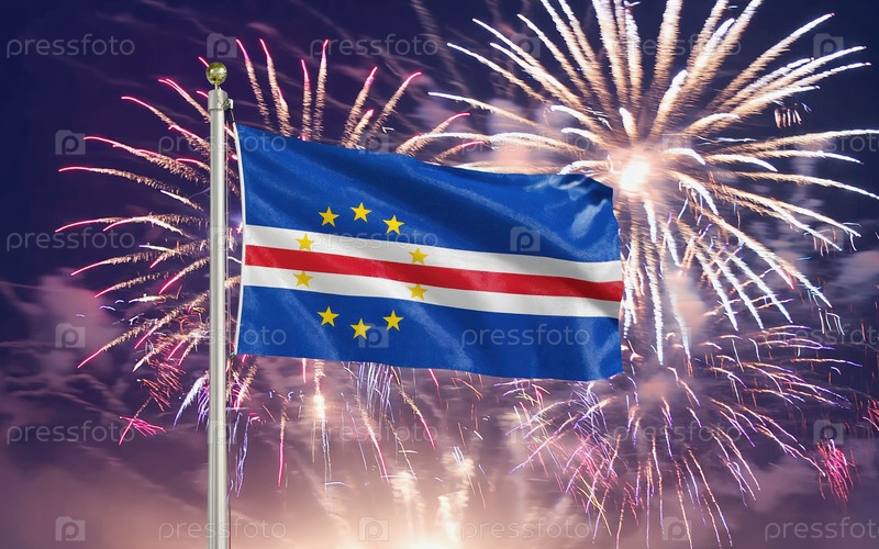 AI generative Национальный флаг Независимости Кабо-Верде, фон с фейерверком