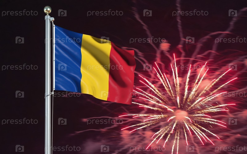 AI генеративный национальный флаг Чада Независимость, фоновый фейерверк