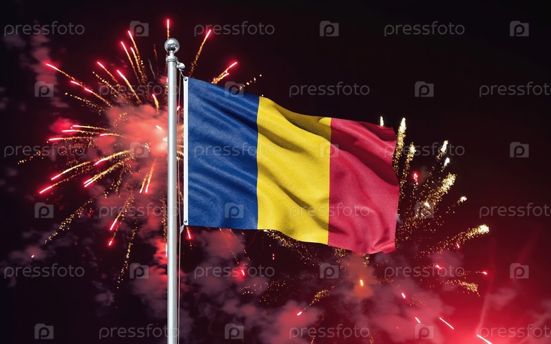 AI генеративный национальный флаг Чада Независимость, фоновый фейерверк