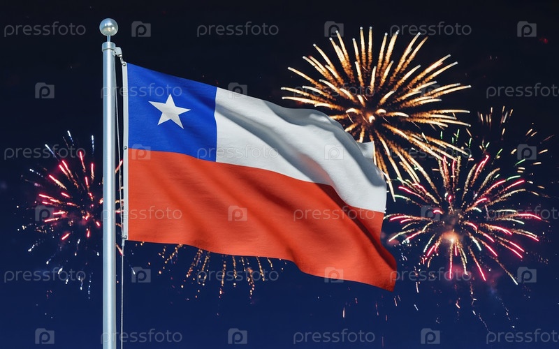 Генеративный национальный флаг Чилийской независимости, фоновый фейерверк AI