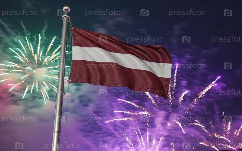 Генеративный национальный флаг Независимости Латвийского государства, фон с фейерверком