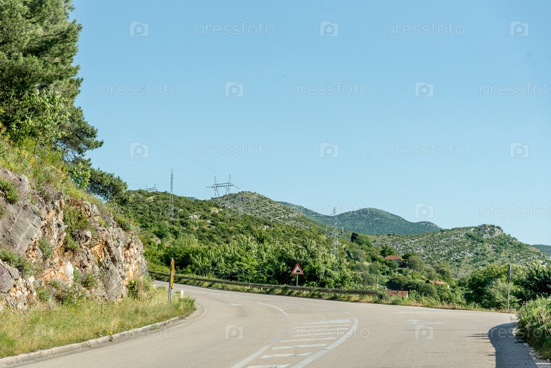 Живописная дорога среди гор Боснии и Герцеговины, автомобиль едет по сельской дороге