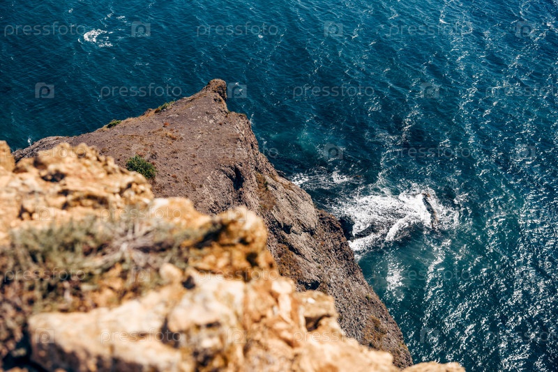 Мыс Фиолент в Крыму, вид на Черное море и скала летом в солнечный день