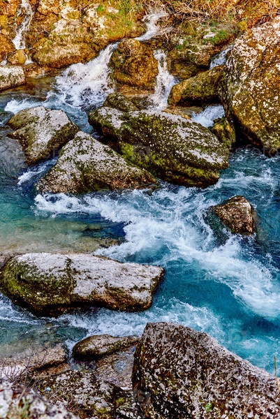 Беспокойная река Чиевна течет в долине недалеко от города Подгорица в Черногории