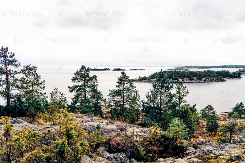 Пейзаж глубокого синего озера в солнечном свете днем, облака на небе Ладога skersh Карелия