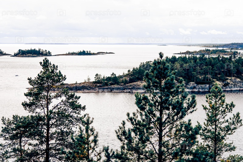 Пейзаж глубокого синего озера в солнечном свете днем, облака на небе Ладога skersh Карелия