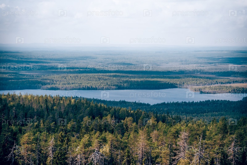 Озеро на вершине горы Воттоваара в Карелии России, летний пейзаж облачный день