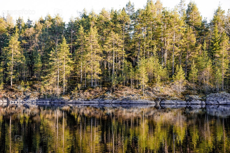 Пейзаж голубого глубинного озера свет солнца, облака неба Ладоги скарины Карелии