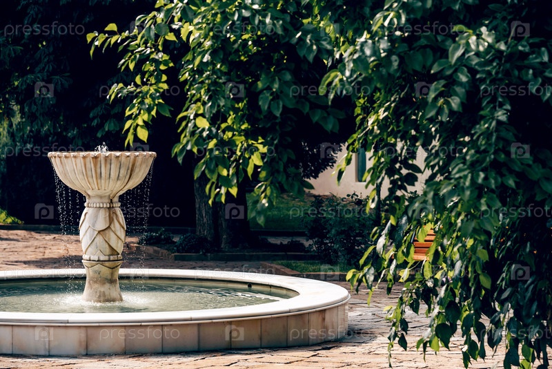 Классический фонтан в ландшафтном дизайне территории Ханского дворца в Бахчисарае, Крым