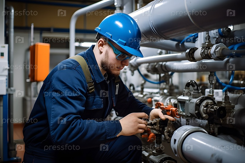 Целенаправленный технический работник-мужчина, корректирующий оборудование на промышленном объекте.Опыт в концепции обслуживания машин