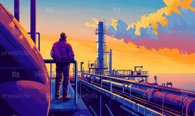 Величественный морской нефтеперерабатывающий завод на закате: взгляд на промышленную красоту