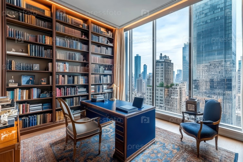 Современный роскошный офисный интерьер с потрясающим видом на город
