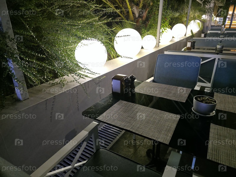 Вечерний минимализм: кафе-терраса с лампами-шарками (Сочи 2025)