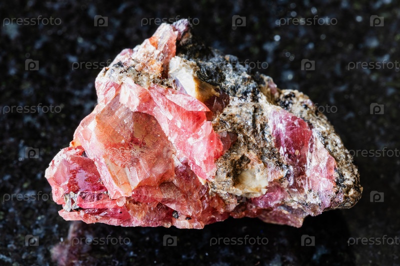 Образец сырого минерала родонита на черном