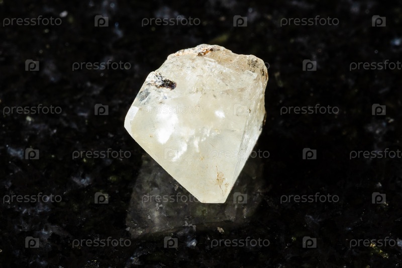 Образец сырого кристалла топаза на черном граните