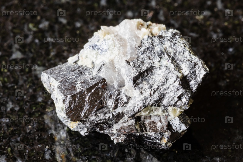 Образец сырого минерала вольфрамит на черном граните
