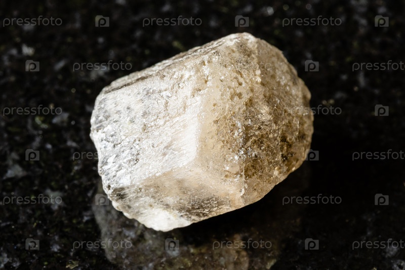 Образец сырого минерального фенокита на черном граните
