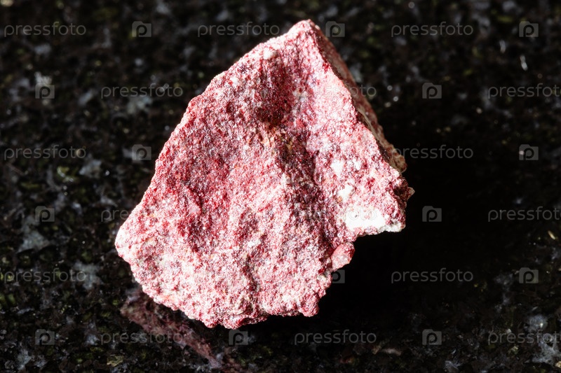 Образец сырого минерала кинобар на черном граните