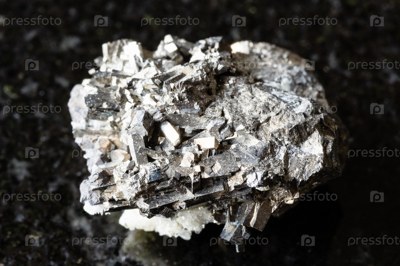 Образец сырого минерала арсенопирит на черном гранитном фоне недалеко от Приморья, Россия