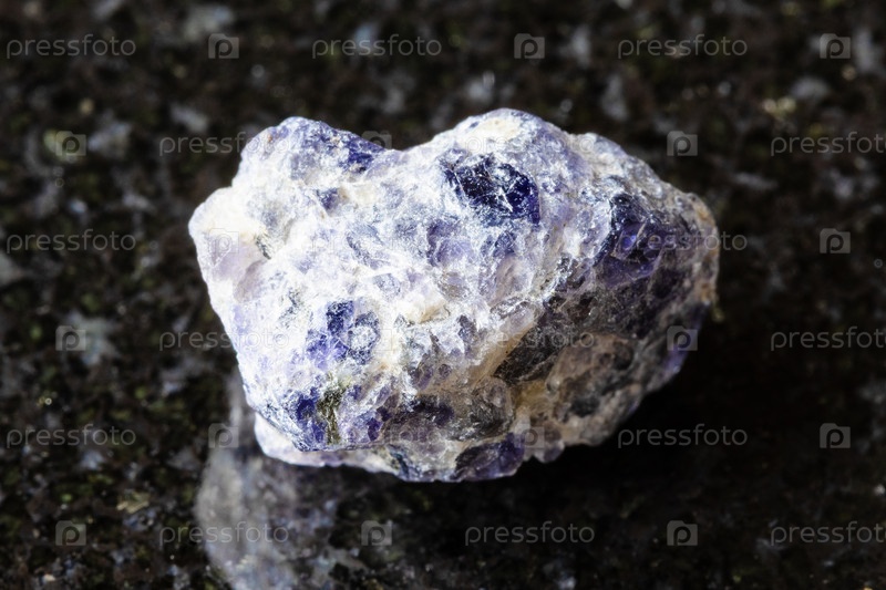 Образец сырого минерала кордиерита на черном гранитном фоне возле Мадагаскара