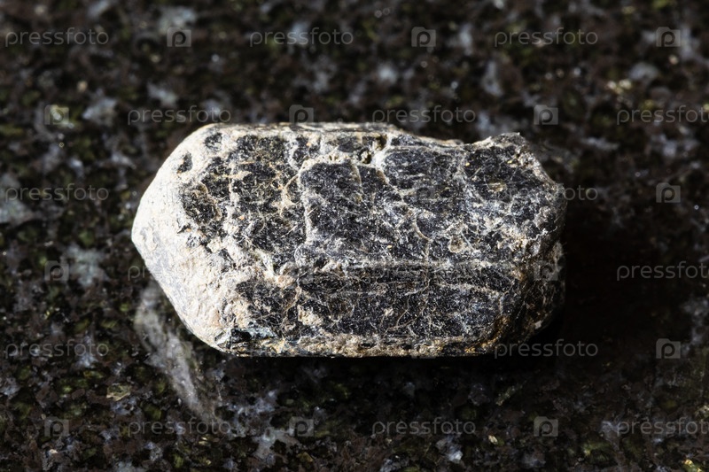Образец сырого минерала аугита на черном граните
