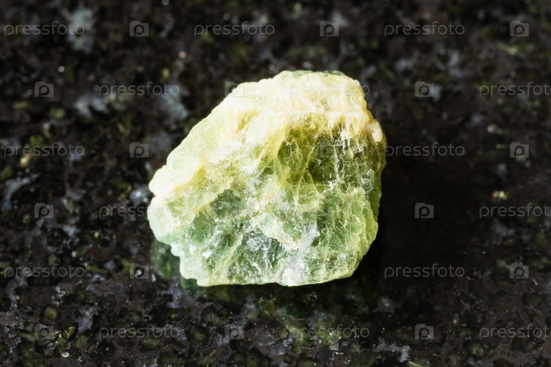 Образец сырого жёлто-зеленого берилового минерала на черном