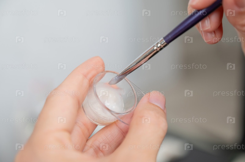 Мастер смешивает краску для бровей