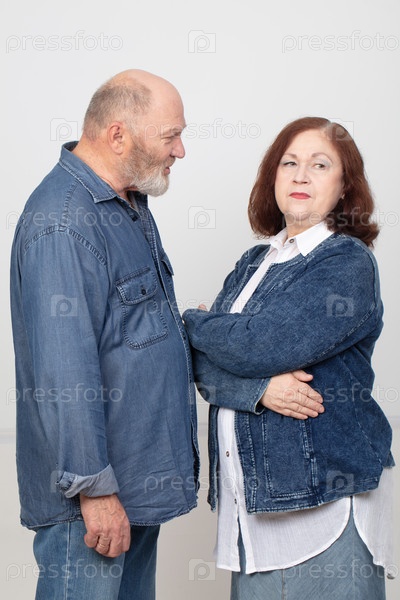 Портрет влюбленной пожилой пары.Они спорят и обсуждают