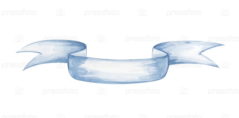 Акварельная голубая лента на белом фоне. Шаблон баннера для текста. Иллюстрация праздничной кассеты изолирована. Шаблон для использования на этикетках, открытках и приглашениях