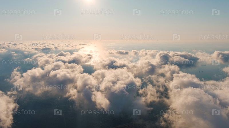Стамбул, Турция Вид на Черное море сквозь облака Летать в облаках Время захода солнца, вид с воздуха