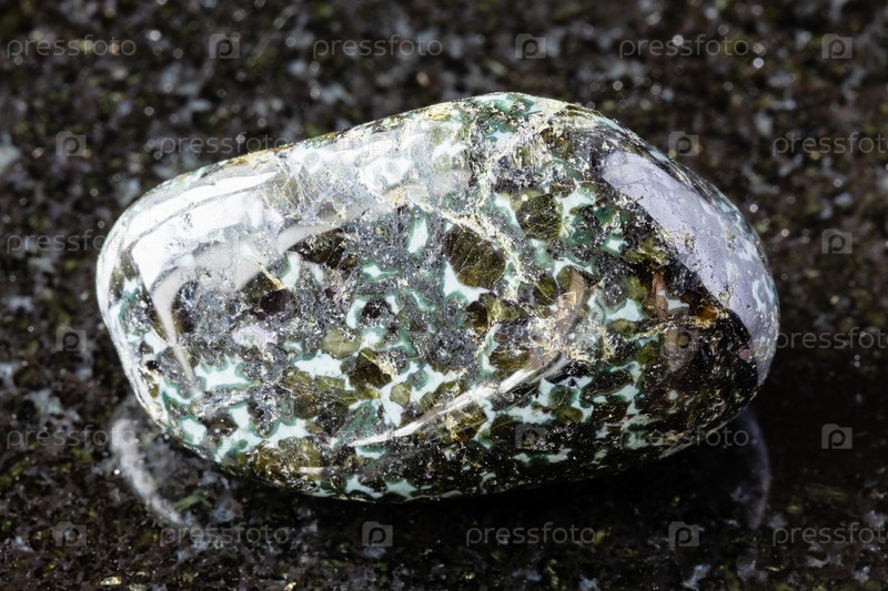 Коллапсированный габбро-норитовый минерал на черном граните
